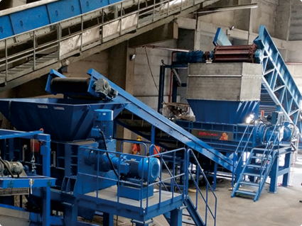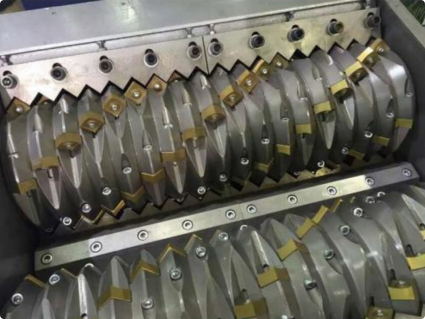 Промышленный шредер — это устройство предварительной обработки, которое подает предварительно отсортированный материал для измельчения на два вала, роторы которых медленно вращаются в противоположных направлениях (чтобы не было пыли и шума). Отрезной диск надет на вал. Данный двухвальный измельчитель рассчитан на длительный срок службы; количество ножей или ширина ножей соответственно определяют размер выходного материала.
